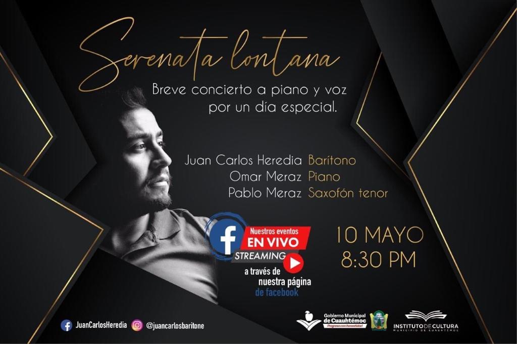 Cuauhtémoc, Chih. – El Instituto de Cultura del Municipio de Cuauhtémoc invitó a la población en general a disfrutar de la Serenata Lontana que ofrecerá este 10 de mayo el internacional Barítono, orgullosamente cuauhtemense, Juan Carlos Heredia, quien cantará unas melodías en ópera por el Día de las Madres.