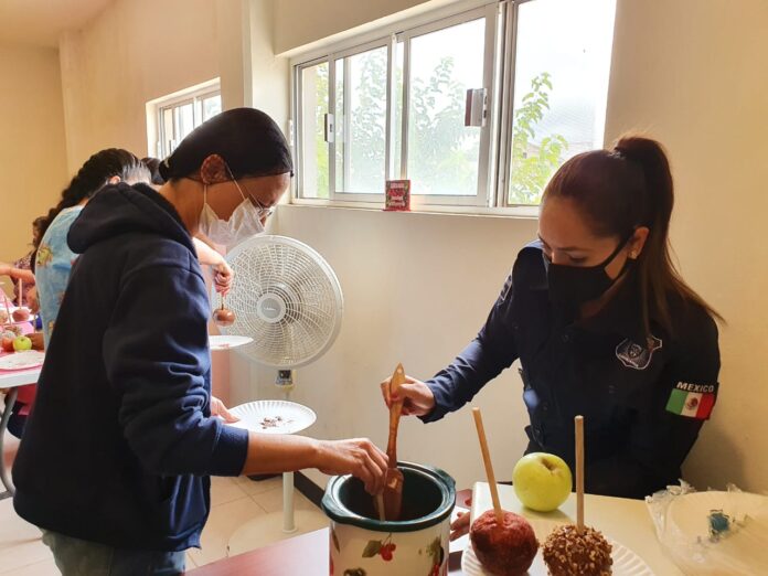 Cuauhtémoc, Chih. – El Sistema DIF Municipal de Cuauhtémoc en coordinación con la Secretaría de Seguridad Pública del Estado continúa con los cursos de capacitación para elaboración de manzanas cubiertas con chocolate, chamoy o chile en polvo.