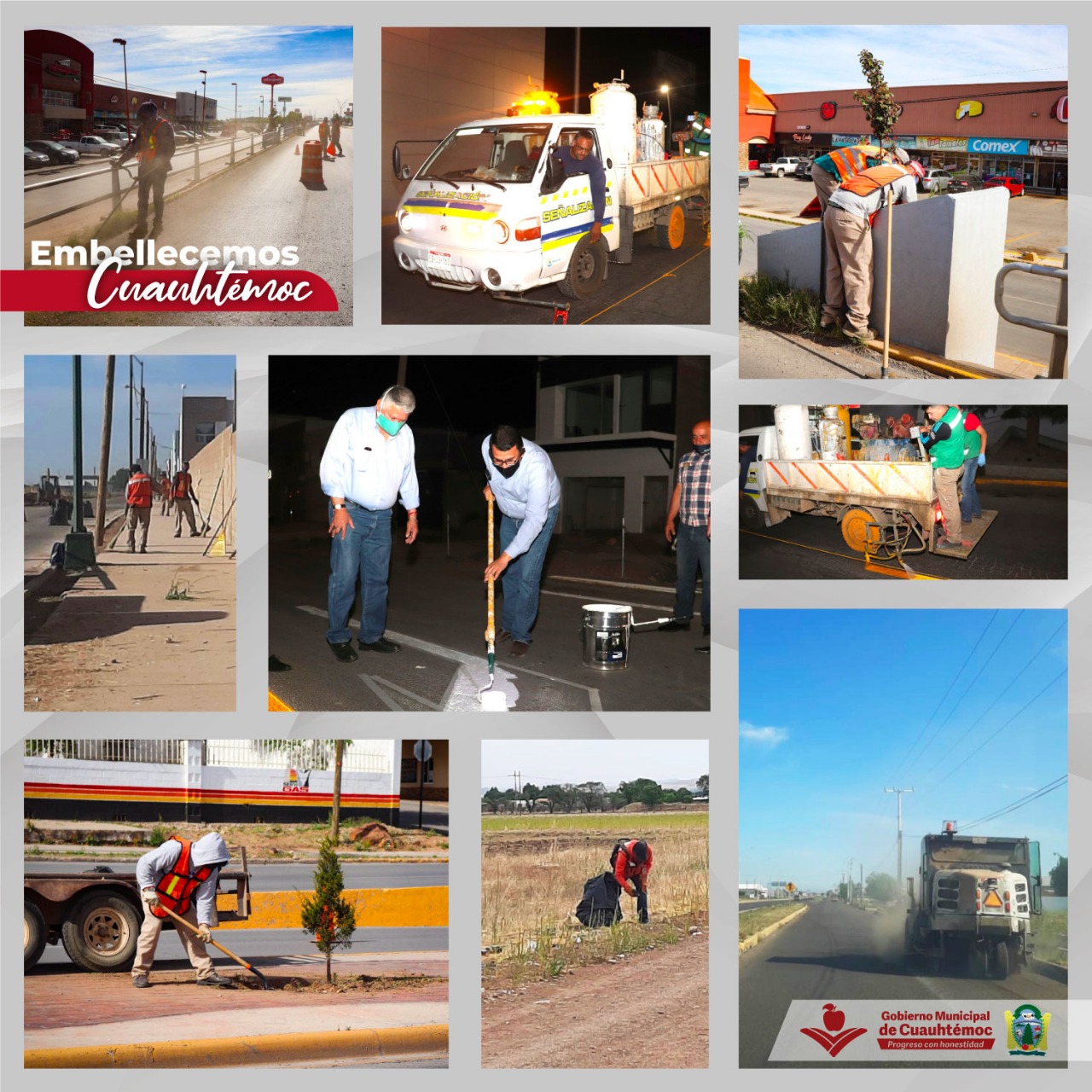A través de la Dirección de Servicios Públicos se realizaron acciones de limpieza en los bustos de los fundadores e impulsores de Cuauhtémoc y que se sitúan en la Plaza Principal, de igual forma quedaron terminados los trabajos de limpieza, poda y recolección de escombro en arterias de la ciudad, como lo es la calle 94, calle Venezuela desde el Corredor hasta la calle 106, calle Presa de la Amistad desde la calle 94 hasta Rancho el Corcel, Boulevard Fernando Baeza, Avenida Tecnológico hasta entronque del Libramiento Gómez Morín, así como Boulevard Jorge Castillo Cabrera, hasta el entronque a Cusihuiriachi.