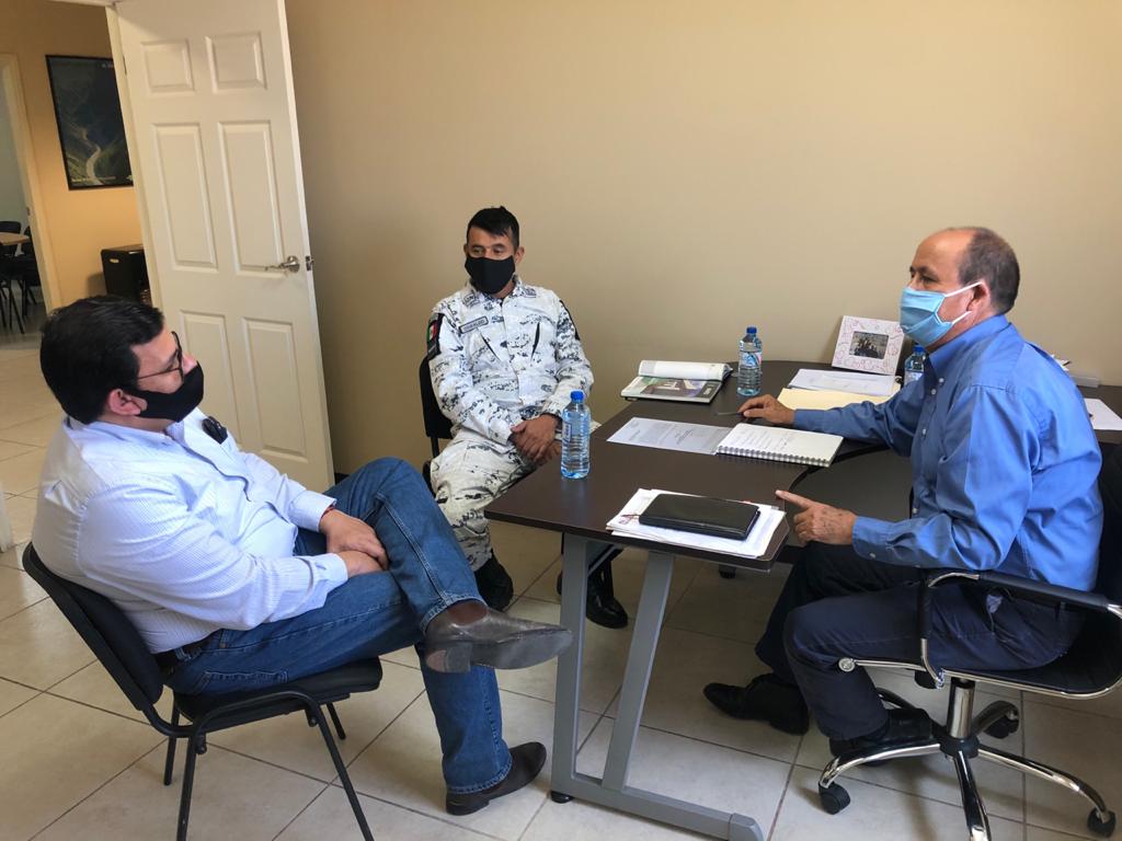 Sostuvieron una reunión el Secretario del Ayuntamiento Francisco Sáenz Soto, el Director de Desarrollo Urbano Humberto Mendoza y el Capitán Oswaldo Domínguez, encargado de la Guardia Nacional para seguir en coordinación en todos los aspectos, tanto del terreno como de seguridad.