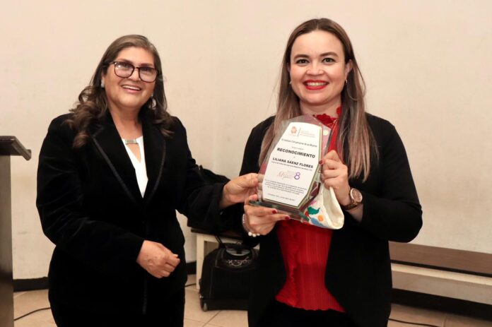 La exposición fue realizada por la consejera del Instituto Chihuahuense de la Mujer, Martha González Robles, quien además entregó un reconocimiento a la titular de la instancia municipal, Liliana Sáenz Flores, en distinción por su trayectoria, logros y labor a favor de las mujeres, jóvenes y niñas.