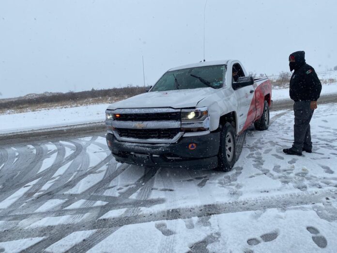 Cuauhtémoc, Chih. – La Unidad Municipal de Protección Civil y el heroico cuerpo de bomberos, apoyados por la Guardia Nacional división caminos, implementaron un protocolo de actuación para vigilar carreteras y calles de la ciudad ante posibles cristalización de la precipitación en forma de nieve que registra el municipio, además para resguardar a personas de calle.