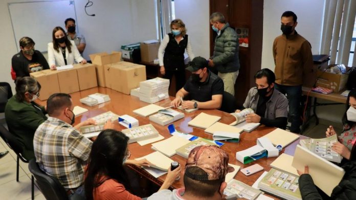 Cuauhtémoc, Chih. – Ningún integrante de la Comisión Electoral o funcionario municipal ha tenido contacto con las boletas que llegaron la tarde de este jueves a la Presidencia Municipal, mismas que cuentan con varios candados de seguridad similares a los de las boletas de una elección constitucional, razón por la que no pueden ser falsificadas.