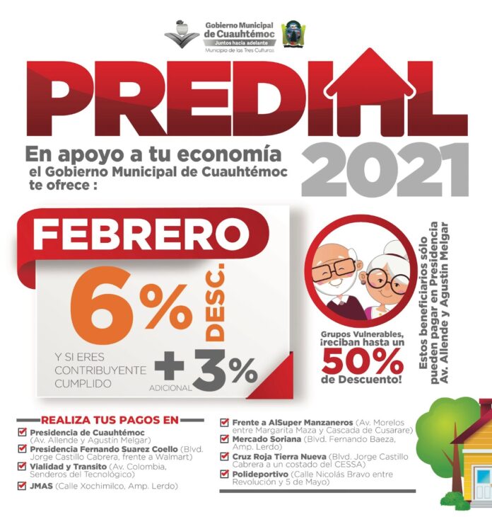 El funcionario invitó una vez más a la población a aprovechar los incentivos que el Municipio de Cuauhtémoc les ofrece para cumplir con esta obligación legal, por lo que insistió en que los días restantes de febrero se continuará atendiendo de lunes a viernes, en horario de 9 de la mañana a 2:30 de la tarde, tanto en los dos edificios de la Presidencia Municipal y en la delegación de Vialidad y Tránsito.