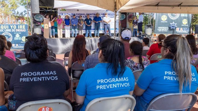 El presidente municipal Beto Pérez encabezó el evento denominado “Día internacional de la lucha contra el uso indebido y el tráfico ilícito de drogas 2023”, bajo el lema “Las personas primero: basta de estigmatización y discriminación”, reforcemos la prevención”.