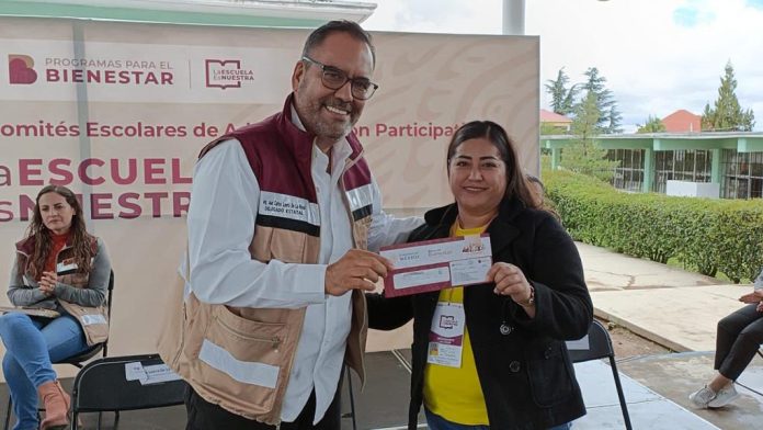 Cuauhtémoc, Chihuahua (ADN / Martín Orquiz) – Durante la entrega de recursos a Comités Escolares de Administración Participativa (CEAP) en Ciudad Cuauhtémoc, el delegado de los Programas para el Desarrollo, Juan Carlos Loera de la Rosa, declaró que el Gobierno de México confía en las madres y padres de familia que aportan su voluntad en la creación de una atmósfera idónea en un plantel digno para sus hijos.