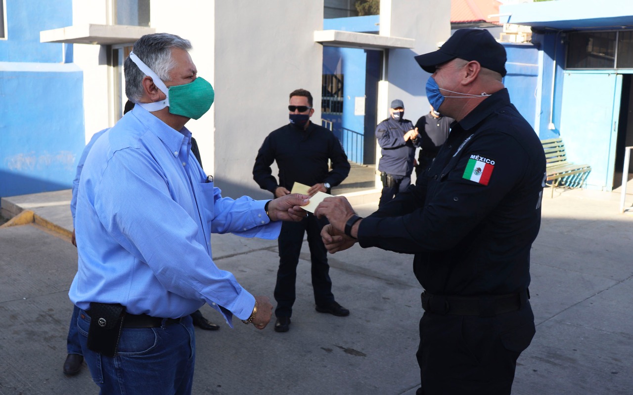Al hacer entrega del estímulo correspondiente a los 165 agentes preventivos, el Alcalde visitó las instalaciones de la comandancia de la Policía Municipal, así como la Comandancia de la Policía Vial, donde les agradeció por conformar los cuerpos encargados de velar por la seguridad y el orden en Cuauhtémoc.