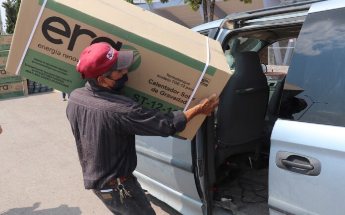 Cuauhtémoc, Chih. – Como parte del convenio establecido con la Congregación Mariana Trinitaria, el Gobierno Municipal de Cuauhtémoc a través de la Dirección de Desarrollo Rural, gestionó previamente y entregó hoy 46 calentadores solares de agua y 7 tinacos para el almacenamiento del vital líquido, para el beneficio de mismo número de familias cuauhtemenses.