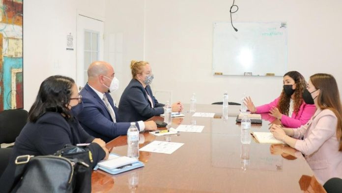 En días pasados, Kathya González, directora del Instituto Municipal de las Mujeres, y Abigail Jiménez, coordinadora de Proyectos, sostuvieron una reunión con Sandrine Goffard, jefa de la Oficina de Asuntos Políticos y Económicos del Consulado General de los Estados Unidos en Ciudad Juárez y su equipo.