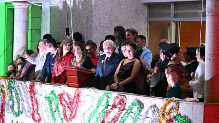 “¡Viva la paz! ¡Viva Cuauhtémoc! ¡Viva Chihuahua!” arengó el alcalde Beto Pérez en el Grito de Independencia, desde el balcón de la Presidencia Municipal, ante cientos de personas que acudieron a disfrutar de una gran celebración iluminada por el espectáculo de juegos pirotécnicos.