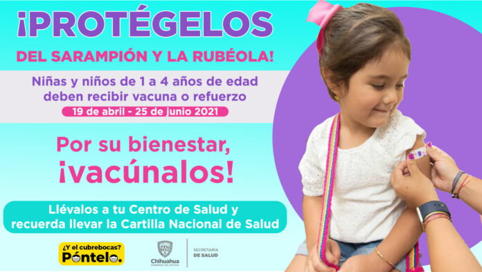 Chihuahua, Chih.- La Secretaría de Salud inició este lunes con la estrategia de aplicación de la vacuna doble viral (SR), que protege a niñas y niños de 1 a 4 años de edad, contra las enfermedades de sarampión y rubeola.