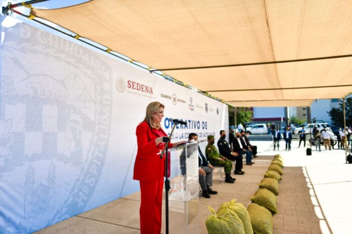 Chihuahua, Chih .- La gobernadora Maru Campos puso en marcha el Operativo de Protección a la Cosecha de Alto Valor, misma que calificó como un compromiso del gobierno estatal para proteger el trabajo agrícola y abatir el robo de nuez, alfalfa, chile, algodón, cebolla, y otros productos agrícolas.