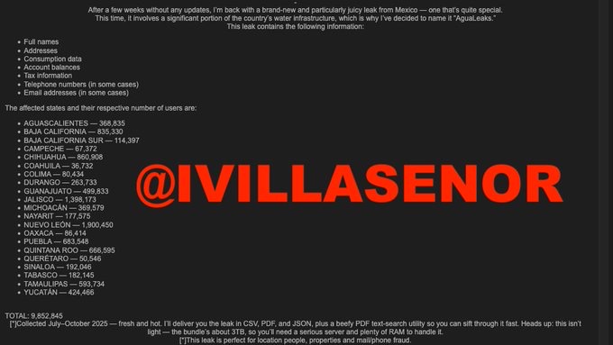 Chihuahua, Chih (ADN/Arturo Hernández) .- El periodista Ignacio Gómez Villaseñor, especializado en ciberseguridad, reportó que un hacker, identificado como “Eternal”, ha puesto a la venta datos de casi 10 millones de personas, entre ellos, los que se ha dado a llamar Agualeaks, entre los que se encuentran los usuarios de las Juntas de Agua en el estado de Chihuahua.