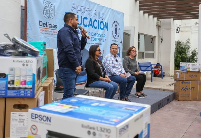 Delicias, Chih. (ADN/Staff) – En una tarde llena de emoción y agradecimiento, el alcalde Jesús Valenciano García lideró la entrega de un importante donativo a diversas instituciones educativas de Delicias. El evento, realizado por el Consejo Municipal de Estacionómetros, tuvo lugar en las instalaciones de esta institución, donde se efectuó la entrega a directivos, maestros y padres de familia.