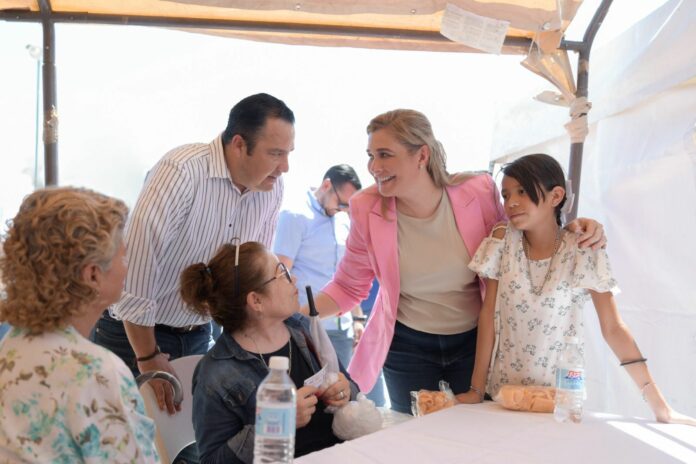 Posteriormente, la mandataria en compañía del secretario de Desarrollo Humano y Bien Común, Rafael Loera, entregó 300 despensas a las familias que acudieron para aprovechar los servicios ofrecidos por las dependencias ahí representadas.