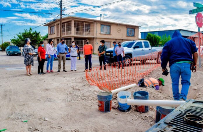 Delicias, Chih. – En compañía de diversas autoridades municipales como la Síndica Municipal, Juana Suárez y la directora de Obras Públicas, Gabriela Flores, el alcalde Alfonso Delgado acudió a supervisar los trabajos que se realizan en la avenida De Los Sicomoros, ubicada entre avenida Las Torres y la calle Segunda, los cuales consisten en la construcción de red de drenaje sanitario y agua potable.