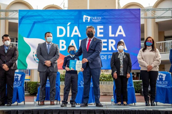 En su mensaje el edil recordó el evento masivo que se realiza cada 24 de febrero en el estadio de béisbol, al que asisten más de 3 mil niños de Delicias y en donde se realiza el acto de incineración de banderas y cambio de las mismas por unas nuevas a cada una de las instituciones educativas, por parte del Ejército Nacional; sin embargo, este año tuvo que ser diferente debido a la emergencia sanitaria, pero ahora con mayor responsabilidad de llevar nuestros símbolos patrios a cada uno de los hogares delicienses, resaltó.
