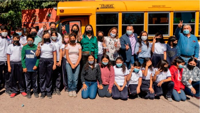 Delicias, Chih. – Mediante un acto protocolario se realizó la entrega oficial de un camión en beneficio de alumnos de la escuela antes mencionada, en la que estudian adolescentes y jóvenes de las colonias Cuauhtémoc, Nuevo Loreto, Cuatro Vientos, Montealbán, entre otras.