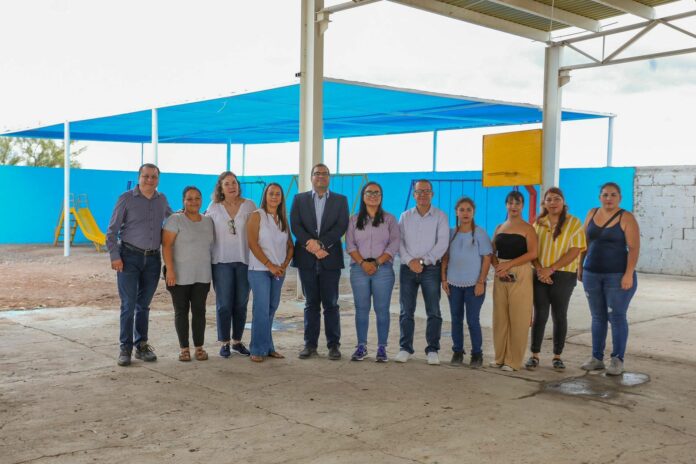 Delicias, Chih. (ADN/Staff) – Esta mañana, el alcalde de Delicias, Jorge Luis Issa Calderón, junto a la síndica municipal Gabriela Peña Orta y la administradora del Consejo Municipal de Estacionómetros, María de Lourdes Gómez, llevaron a cabo la entrega simbólica de un donativo destinado a mejorar las instalaciones del jardín de niños “Ricardo Flores Magón” ubicado en la colonia Vicente Guerrero. El donativo, con una inversión de 30 mil pesos, consistió en la pintura de la barda perimetral, el pintado de juegos, la instalación de una malla sombra y el emparejamiento del terreno.