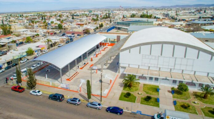Delicias, Chih. – Eliseo Compeán Fernández entregó esta mañana en conjunto con el Consejo Municipal de Estacionómetros, los dos techados exteriores y la rehabilitación de la fachada del Gimnasio Municipal.
