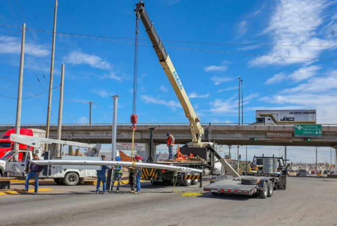 Delicias, Chih. (ADN/Staff) – En un esfuerzo por garantizar la seguridad de los conductores y prevenir posibles accidentes con el ferrocarril, la Subdirección de Vialidad ha instalado un nuevo semáforo en el cruce ferroviario de la avenida Fernando Baeza, en sentido de Sur a Oriente. La colocación de este semáforo ha sido una maniobra cuidadosamente planificada y ejecutada, que comenzó alrededor de las 11 de la mañana y resultó en el cierre temporal de la vialidad en dicho sentido.