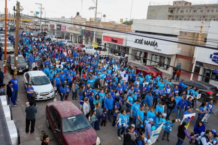 Delicias, Chih. (ADN/Staff) – La tarde de hoy, un ambiente emotivo y solidario se vivió en Delicias con la realización de una caminata en conmemoración del Día Internacional de la Concienciación sobre el Autismo. Este evento, organizado por el Centro Regional de Autismo Rotario y dirigido por la maestra Yolanda Plascencia, contó con la participación del alcalde Jesús Valenciano, su esposa Alma Limas de Valenciano e hijos, quienes se sumaron a numerosas familias para recorrer las principales calles del centro de la ciudad.