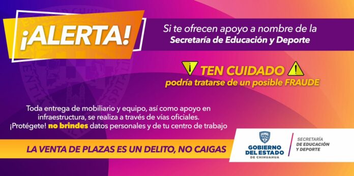 Chihuahua, Chih. (ADN/Staff) – La Secretaría de Educación y Deporte (SEyD) ha detectado recientemente un método de estafa vía telefónica dirigido a autoridades municipales y directivos escolares.