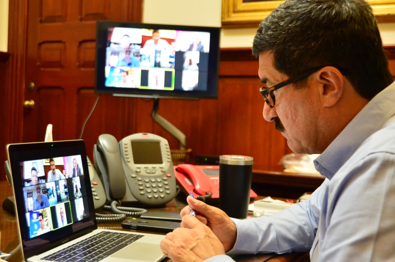 Con el esquema de reuniones virtuales, se atiende a la contingencia sin poner en riesgo de contagio a ninguno de sus colaboradores y se mantiene la comunicación constante con los integrantes del Gabinete.