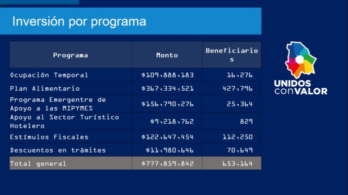 Estos recursos también se han entregado para proyectos de ocupación temporal, a organizaciones de la sociedad civil y en subsidios a MiPyMEs, restaurantes, hoteles, así como estímulos fiscales a empresas.