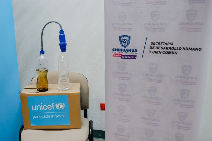 Octavio Villegas Casas, subsecretario de Desarrollo Humano señaló que durante esta gira de trabajo por dicha región de la entidad se distribuyeron 300 de estos apoyos donados por el Fondo de las Naciones Unidas para la Infancia (Unicef), los cuales son fáciles de instalar a una llave, cubeta o tinaco.