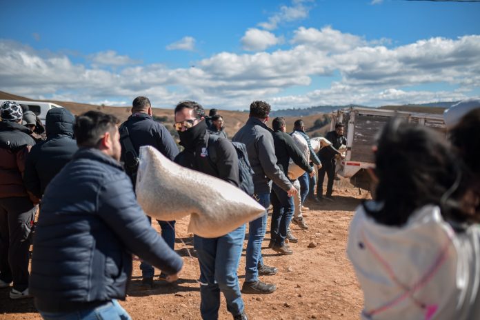 Este día en la comunidad El Cuervo, se entregaron 40 toneladas de maíz y frijol a 500 familias.
