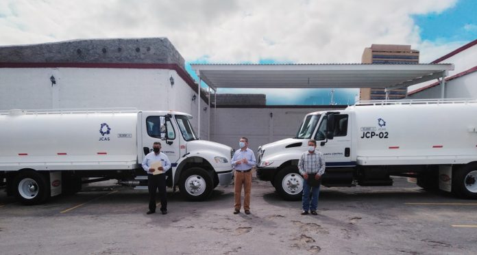 Chihuahua, Chih. – Para mejorar la distribución de agua potable a familias de los municipios del Valle de Juárez, la Junta Central de Agua y Saneamiento (JCAS) donó pipas de agua potable a las Juntas Municipales de Agua y Saneamiento (JMAS) de Ahumada y Praxedis G. Guerrero.