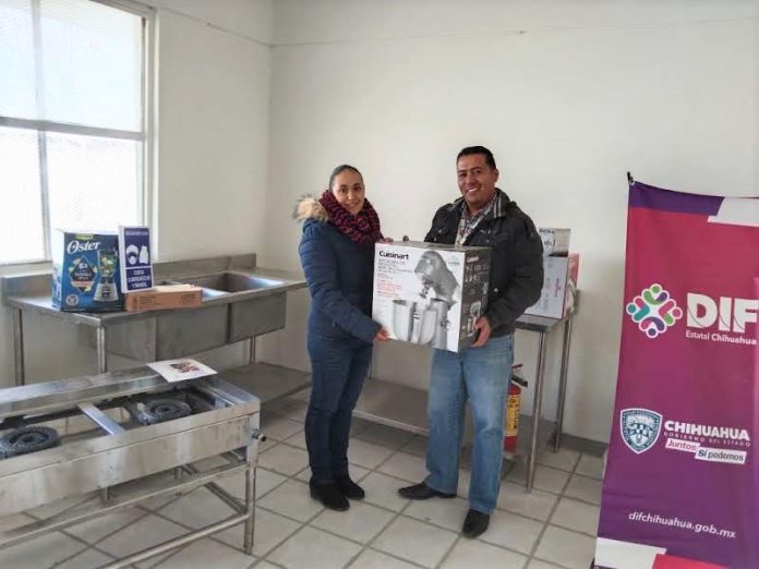 Ciudad Juárez, Chih .- El DIF Estatal continúa con el equipamiento de cocinas escolares en el municipio de Juárez, personal de la dirección de Alimentación y Desarrollo Comunitario, destinó 354 mil 987 pesos en equipo de cocina para la primaria Pascual Orozco y al Telebachillerato 8058, beneficiando a 130 alumnos y personas en situación de vulnerabilidad.
