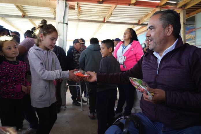 Posteriormente, acudió a la colonia Las Haciendas, donde también entregaron cobijas y se compartió la Rosca de Reyes con los habitantes del sector.