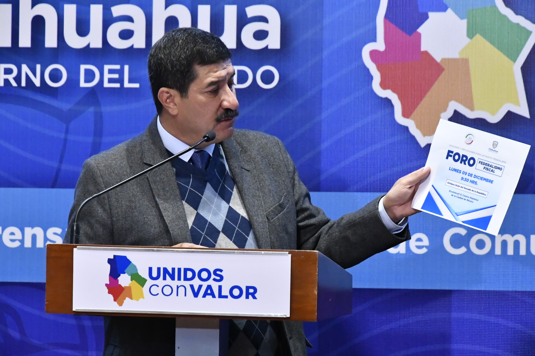 Chihuahua, Chih. – El gobernador Javier Corral anunció que el Foro Federalismo Fiscal, que se desarrollará el próximo lunes 9 de diciembre en la Ciudad de México, cambió de lugar y ahora se realizará en el Claustro Monte de Piedad.
