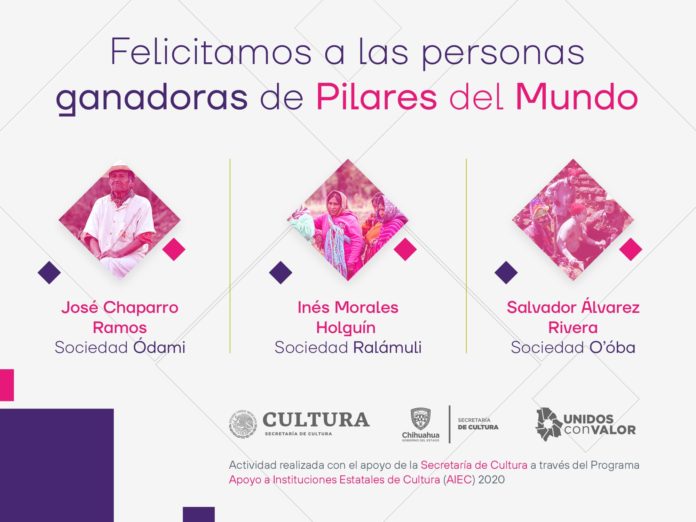 Chihuahua, Chih. – La Secretaría de Cultura de Chihuahua, en coordinación con la Secretaría de Cultura Federal, dio a conocer a las personas ganadoras del certamen Pilares del Mundo, Tesoros Humanos Vivos 2020, que fomenta la preservación y mantenimiento de las expresiones y prácticas culturales vigentes en las comunidades indígenas.