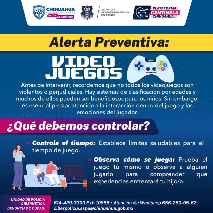 Ciudad Juárez, Chih .- La Unidad de Policía Cibernética de la Secretaría de Seguridad Pública del Estado (SSPE), emitió una serie de recomendaciones para prevenir el riesgo por el que pueden pasar los más jóvenes a la hora de utilizar videojuegos, y evitar cualquier exposición al peligro.