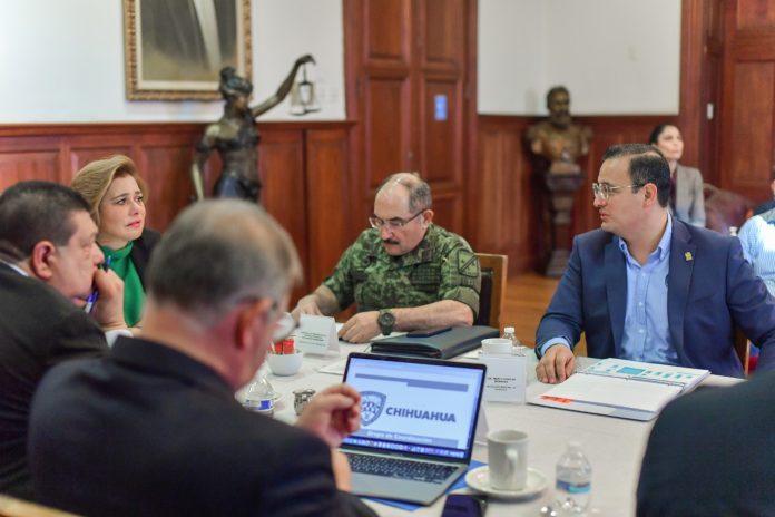 Chihuahua, Chih .- Como parte del compromiso para priorizar la seguridad de todos los chihuahuenses, la mañana de este lunes, la Gobernadora del Estado, junto con los miembros de la Mesa Estatal de Seguridad sesionó para conocer la última actualización de la situación del Estado de Chihuahua en materia de seguridad.