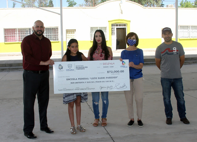 Blanca Gámez hizo entrega al director Héctor Ramón Caballero Estrada del cheque con el apoyo y tanto el como la niña diputada, agradecieron a la legisladora y le aseguraron que los recursos serán bien aprovechados.