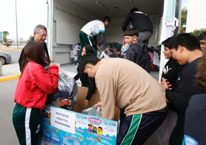 Alumnos del plantel Juárez II tuvieron la iniciativa de recolectar y entregar las chamarras que serán donadas por el DIF Estatal a los niños más necesitados.