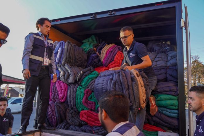 Chihuahua, Chih .- Carla Rivas, titular de la SDHyBC, encabezó los trabajos en los que se distribuyeron más de 1,200 apoyos, como colchonetas, cobijas y despensas con artículos de la canasta básica, a la población que más lo requiere en estos momentos.