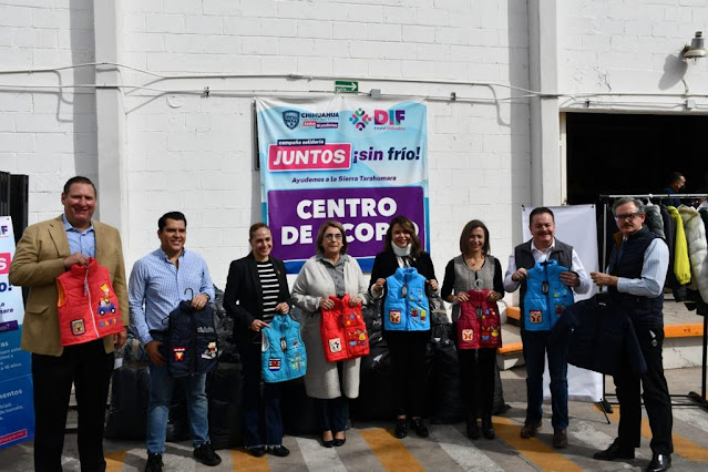 La presidenta del Congreso Geo Bujanda acompañada de diputadas y diputados de distintas fuerzas políticas hizo entrega de 700 chamarras a la campaña “Juntos sin frío” del DIF estatal.