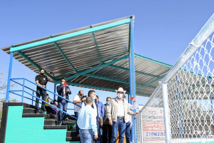 La Cruz, Chih. – De gira por el municipio de La Cruz, el gobernador Javier Corral Jurado inauguró un parque de beisbol, dos salones de usos múltiples que fueron remodelados, una cancha de frontón y supervisó el inicio de trabajos en otro salón de eventos, en donde se invierten 10 millones 625 mil 167 pesos entre el Estado, Ayuntamiento y los Comités de Obras.