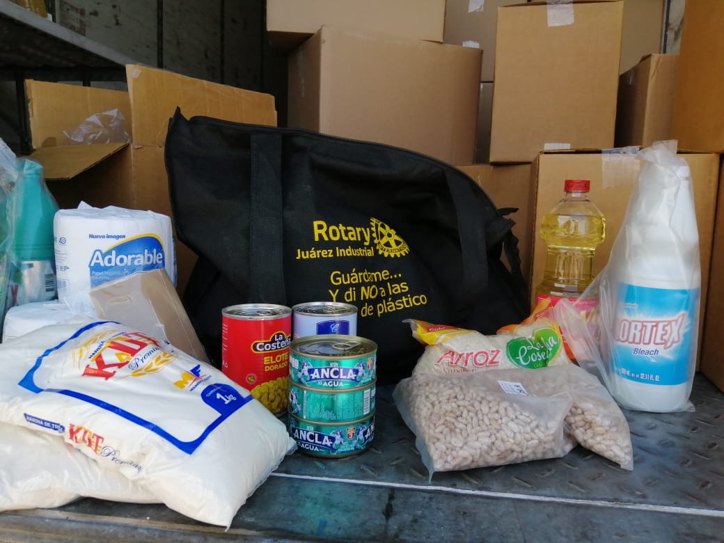 Las despensas fueron otorgadas por el Club Rotario Juárez Industrial, las cuales contenían arroz, frijol, productos enlatados y no perecederos, entre otros, informó Jesús Vargas, Jefe de División de la Coepi en Juárez.