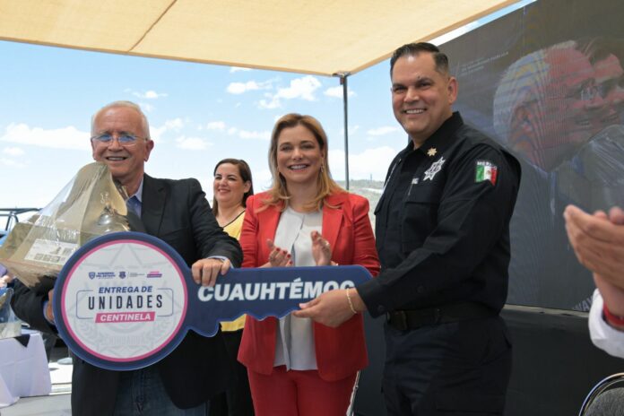 El acto se celebró en las instalaciones del C-7 en la ciudad de Chihuahua, donde la mandataria estatal, resaltó que de esta manera se fortalece a las policías municipales, para que brinden de mejor manera protección a la ciudadanía.