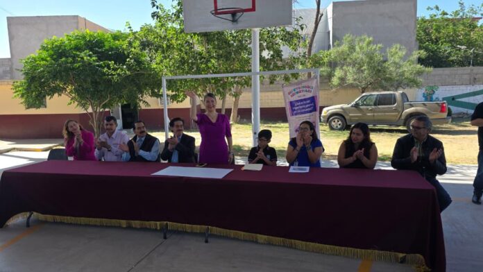 Ciudad Juárez, Chih. (ADN/Staff) – La diputada local Rosana Díaz encabezó la entrega de un apoyo económico de 82 mil pesos a la escuela primaria Vicente Guerrero, recurso destinado a mejorar la infraestructura del plantel educativo.