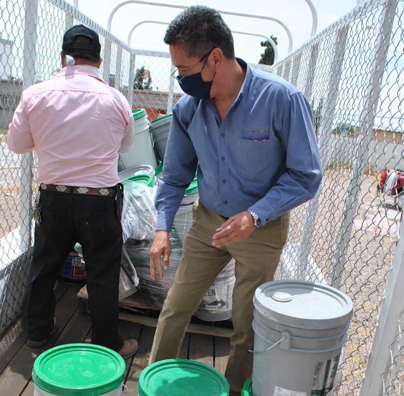 Jímenez, Chih. – Escuelas primarias federales del municipio de Jiménez recibieron un total de 95 cubetas de pintura de Servicios Educativos del Estado de Chihuahua (Seech), que servirán para trabajos de mantenimiento y rehabilitación.