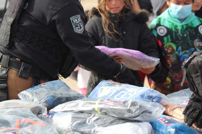 Ciudad Juárez, Chih .- En un acto de solidaridad durante esta temporada decembrina, oficiales de la Fuerza Especial SWAT, de la Secretaría de Seguridad Pública del Estado (SSPE), se unieron para brindar abrigo y calor en esta temporada a los residentes de la Casa Hogar “Pan de Vida”, ubicada en la colonia Puerto de Anapra, al poniente de Ciudad Juárez.
