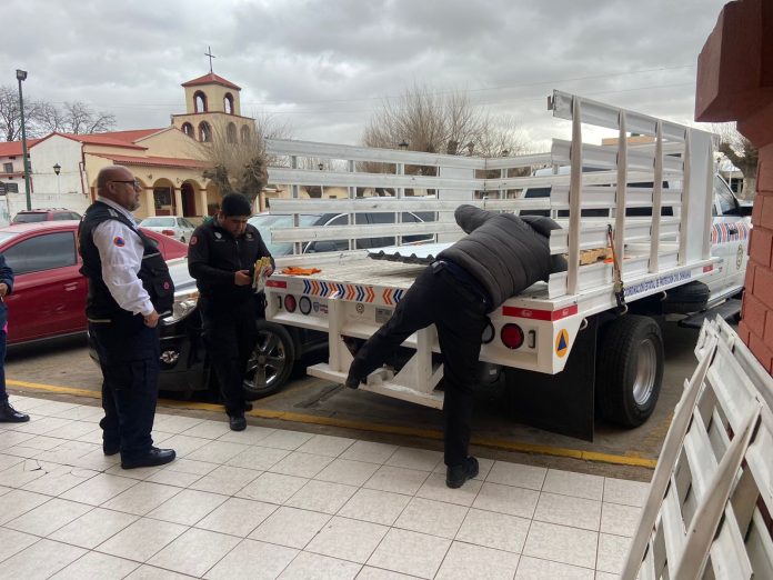 Chihuahua, Chih .- Durante las primeras horas de este martes personal de la CEPC, acompañados por el titular, Luis Corral Torresdey, acudieron a los municipios de Gómez Farías y Madera para trasladar y hacer entrega de apoyos emergentes como láminas, a familias que se vieron afectadas por los fuertes vientos, los cuales causaron daños en sus viviendas.