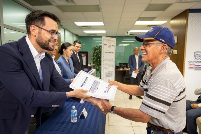 Chihuahua, Chih .- La Comisión Estatal de Vivienda, Suelo e Infraestructura (Coesvi), a través de los programas “Juntos sí podemos” y Coesvi te echa la mano”, entregó 35 escrituras de vivienda a beneficiarios de los municipios de Chihuahua, Aldama, Aquiles Serdán, Juárez y Camargo.